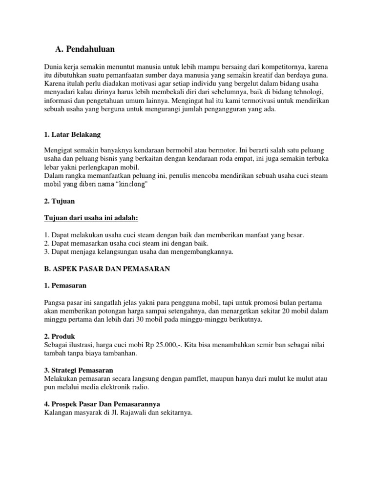 Contoh Proposal Usaha Showroom Mobil. Proposal Usaha Sewa / Rental Mobil. Silahkan Anda baca, dan langsung buat proposalnya, kreasikan sesuai kebutuhan anda Contoh proposal dan studi kelayakan bisnis untuk memulai usaha jasa rental atau sewa mobil lengkap dengan perhitungan balik modal atau BEP dalam bentuk excel dan word. Proposal usaha dianggap sebagai cara yang ideal untuk merencanakan karier bisnis karena berisi hal detail mengenai berbagai aspek berhubungan dengan. Setelah Anda pelajari semua Paket Contoh Proposal Usaha Bengkel Mobil, maka saatnya Anda membuat Proposal Usaha nyata sesuai parameter kondisi usaha yang.